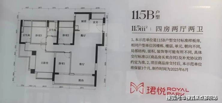 【115㎡四房2卫 B户型】2栋1单元01/06户(西南向),景观指向裕安学校及周边城中村。