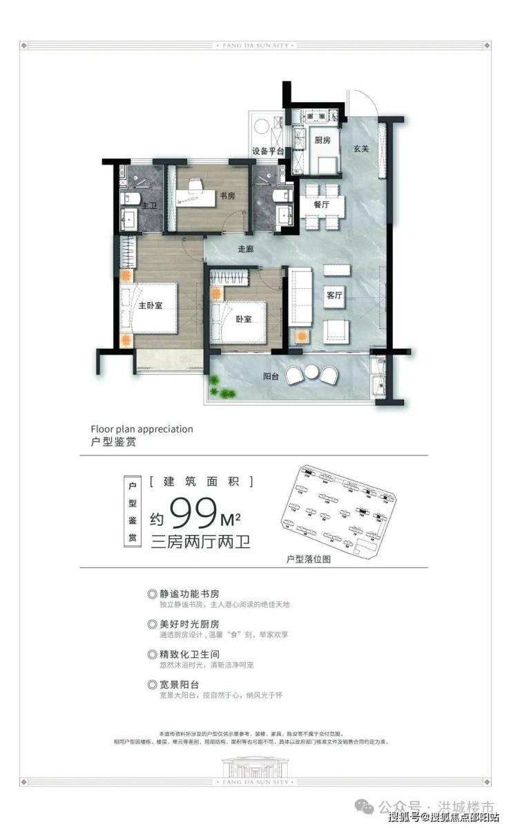 主推建面99-141㎡三房/四房,覆盖刚需至改善需求。