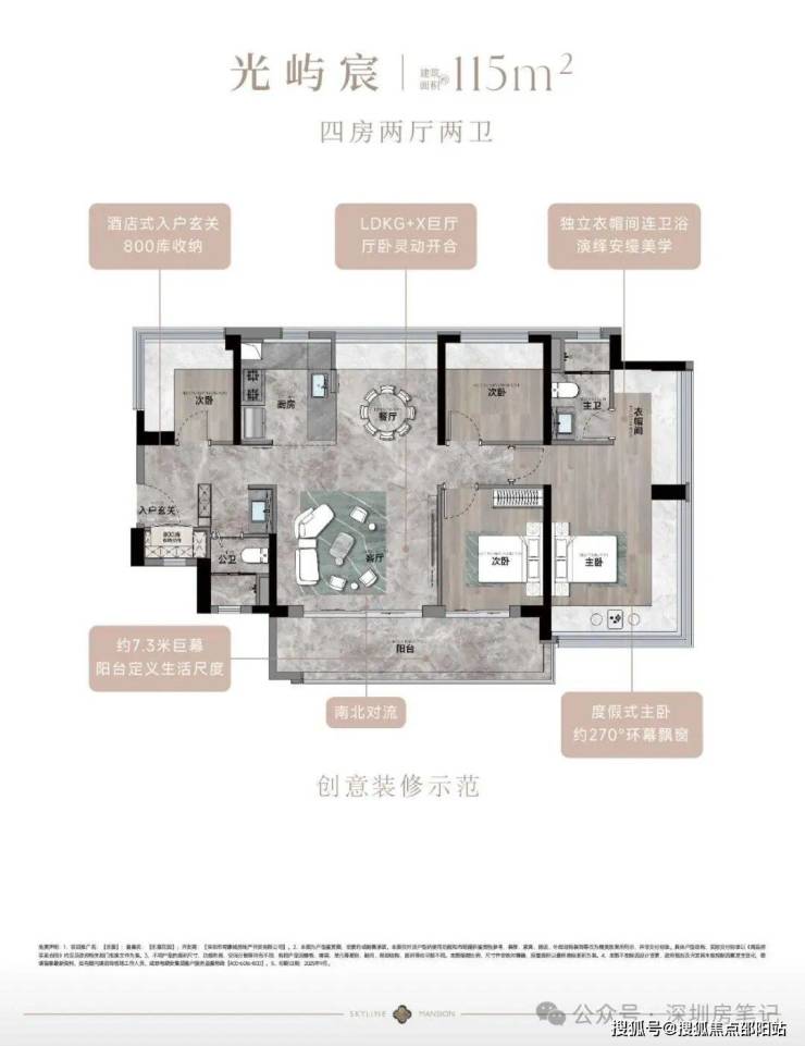 115㎡四房两卫(光屿宸)总价424-444万,单价3.69-3.87万/㎡;