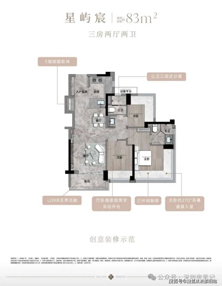 83㎡三房两卫(星屿宸)总价299-320万,单价3.63-3.88万/㎡;