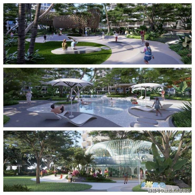 通过立体景观层次、流线造型语言创造“热带雨林”的景观体验。