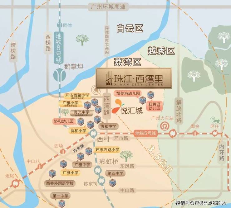 项目位于荔湾区西湾路,约3.5公里范围内9所名校学府环绕。