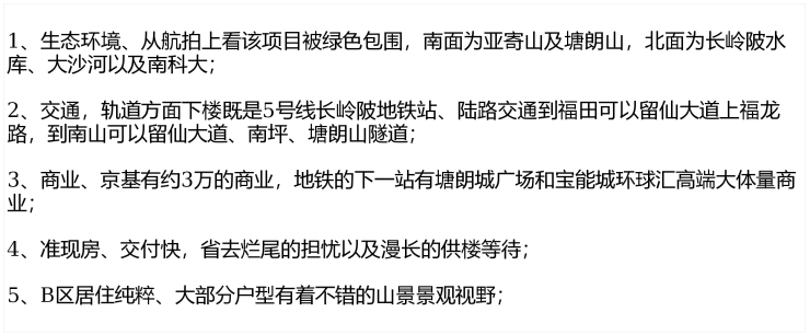 项目位于西丽科教城,周边的教育资源丰富,项目自带一所9班幼儿园,西南侧为私立学校深圳道尔顿新华公学,项目南侧的18班九年一贯制长源学校正在修建。学区范围内三所学校,分别为南科大实验学校、南科大第二实验小学,南科大塘朗小学,3所学校目前都只是小学,初中目前只能在二小借读,除了塘朗小学要拓建成9年制学校外,塘朗城车辆段目前也在建一所中学,但是整体水平都较为一般