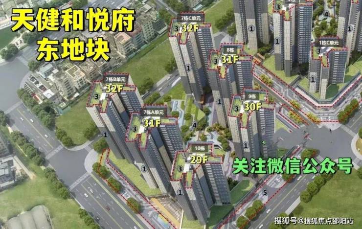 东地块,总占地面积约2.26万㎡,总建筑面积约14.43万㎡,计容建筑面积约10.37万㎡,容积率4.5,绿化率40%,共由6栋总高29-32层的住宅组成,其中7栋A单元住宅31F,7栋B/C单元住宅32F,8栋住宅31F,9栋住宅30F,10栋住宅29F,规划有公交首末站,社区菜市场。