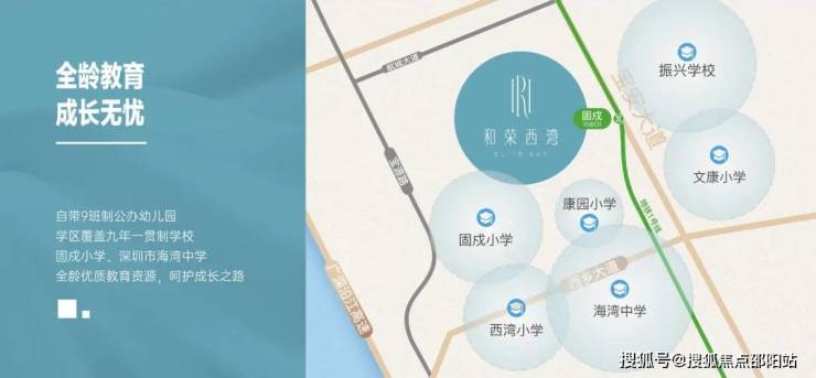 项目自带9班制公办幼儿园,学区覆盖九年一贯制固戍小学、深圳市海湾中学,启航精英人生路