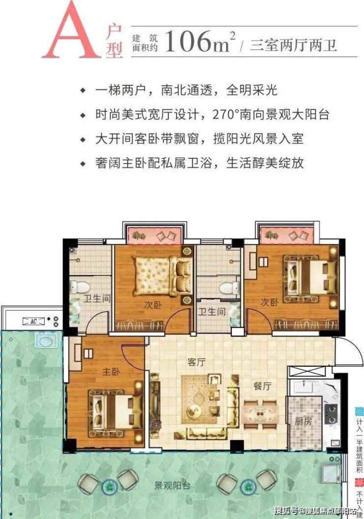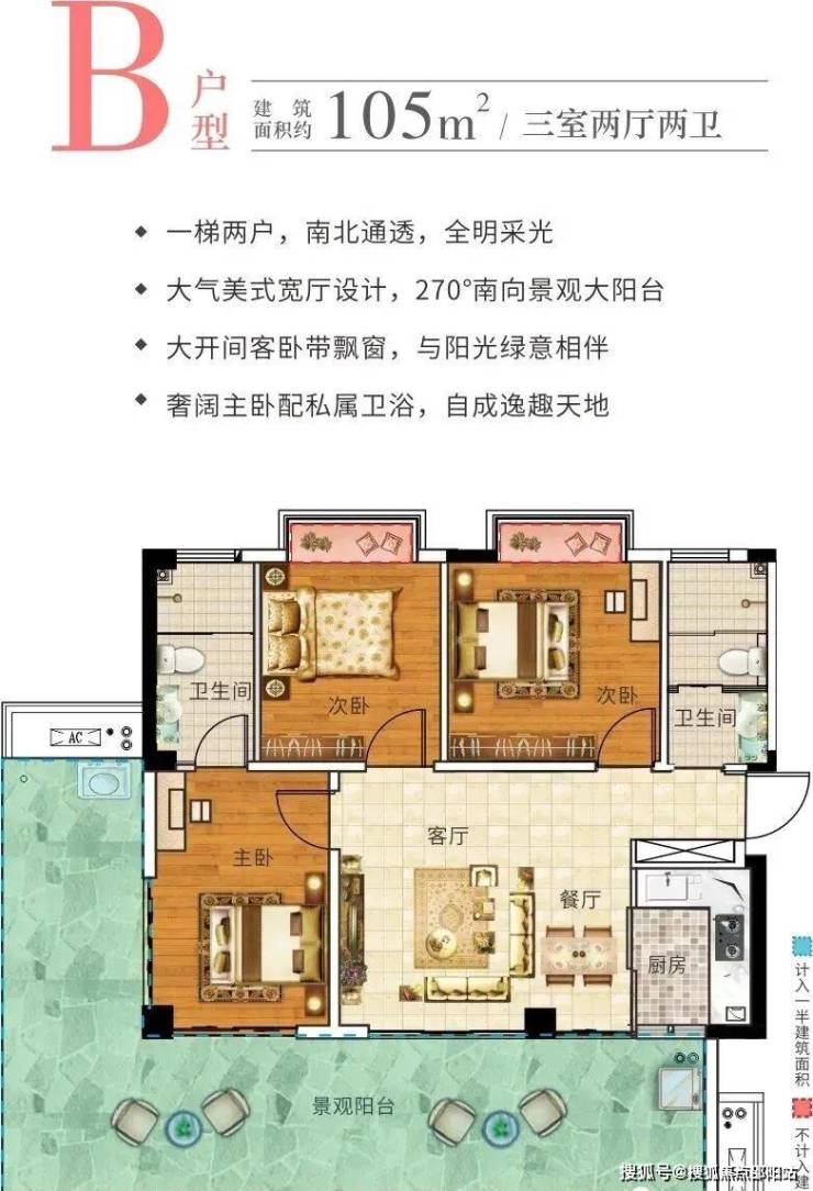建面约105-106㎡六层水岸住宅,一梯两户,全明采光,精工品质,纯板式三房,空间设计精巧,用心把每一份空间留给生活。以大尺度空间壮阔人生境界,用匠心诠释人居美学。