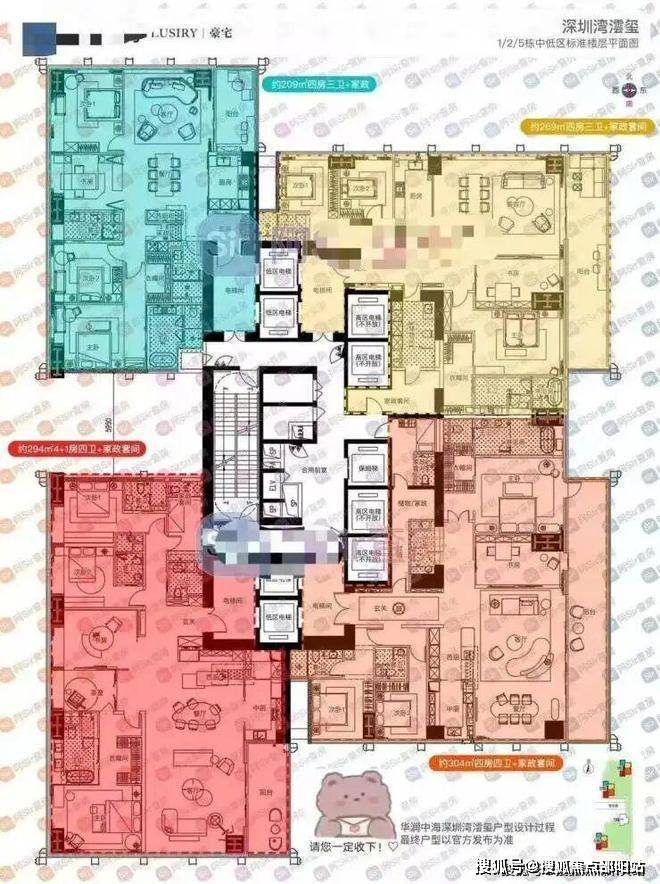①低中区5F起(150米以内)是约209-304㎡四房以上大户型;