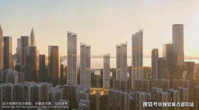 塔楼规划:由5座150-250米塔楼组成(1座250米公寓,4座住宅分别为150米、200米、200米、240米),采用错落布局和平面退台设计,优化深圳湾景观视野,层高3.6米,约40-70层(不含底商)。外立面采用全玻璃幕墙,设计灵感来自植物细胞的有机形态,原方案锐利阳刚,新方案柔软温润,类似天鹅湖花园和红树西岸,强调自然与居住融合,绿植丰富。