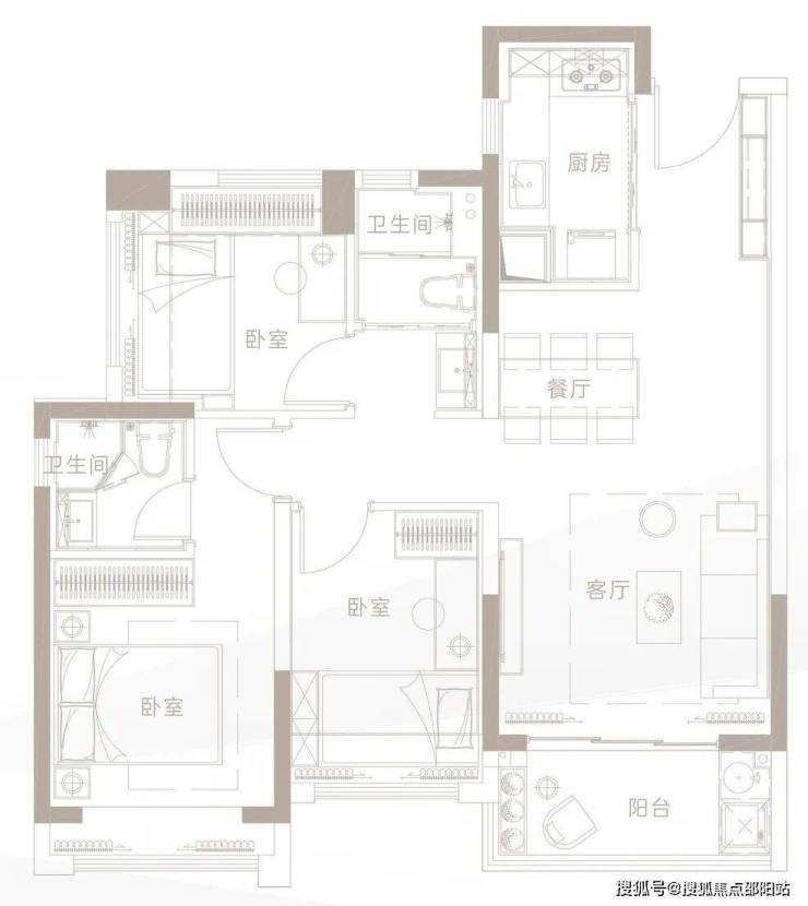 主力户型:约79㎡三房两厅一卫