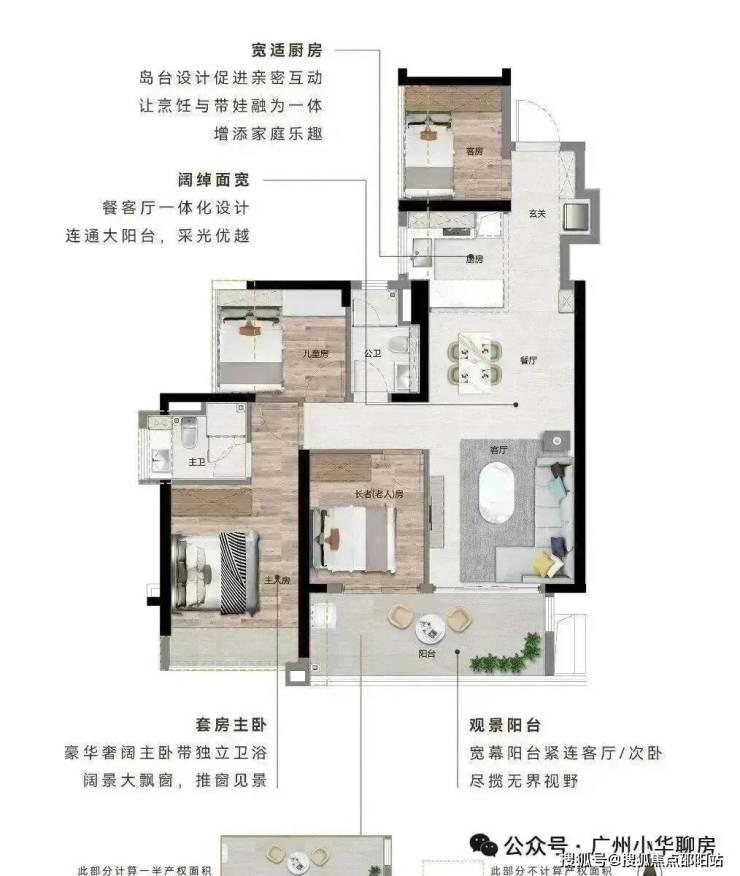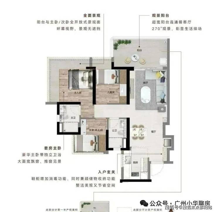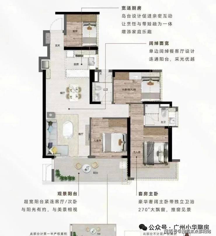 三开间朝南|12㎡宽阔阳台|超广角江景视野|270°主卧飘窗