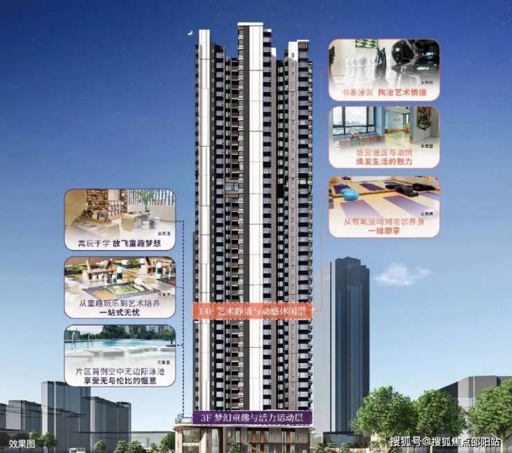 3楼做了空中泳池,另外有艺术书吧、童话乐园、运动天地等也做得很用心!!14楼是瑜伽区、休闲漫步区、棋弈区、赛车区。