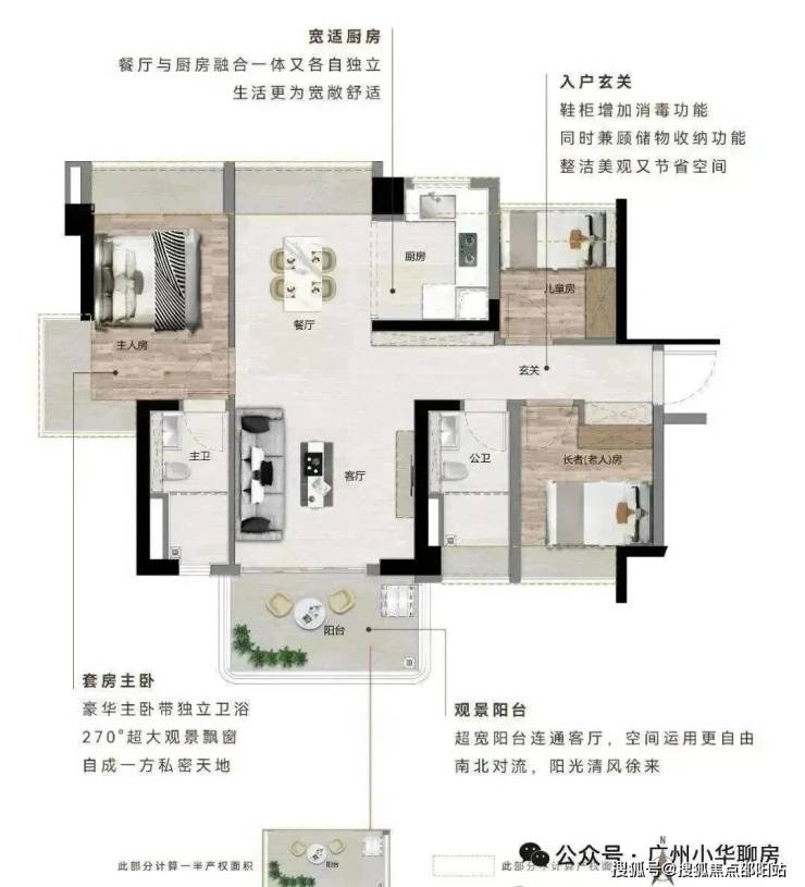 主卧 270°大飘窗|U 型厨房|动静分区