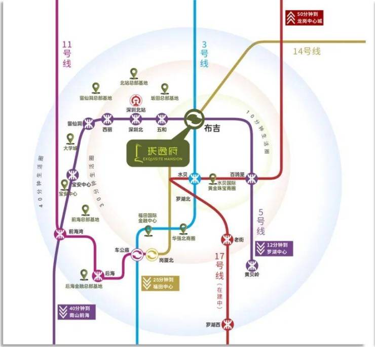 14号线:东部快线之称,实现布吉-福田15分钟通勤生活优势。
