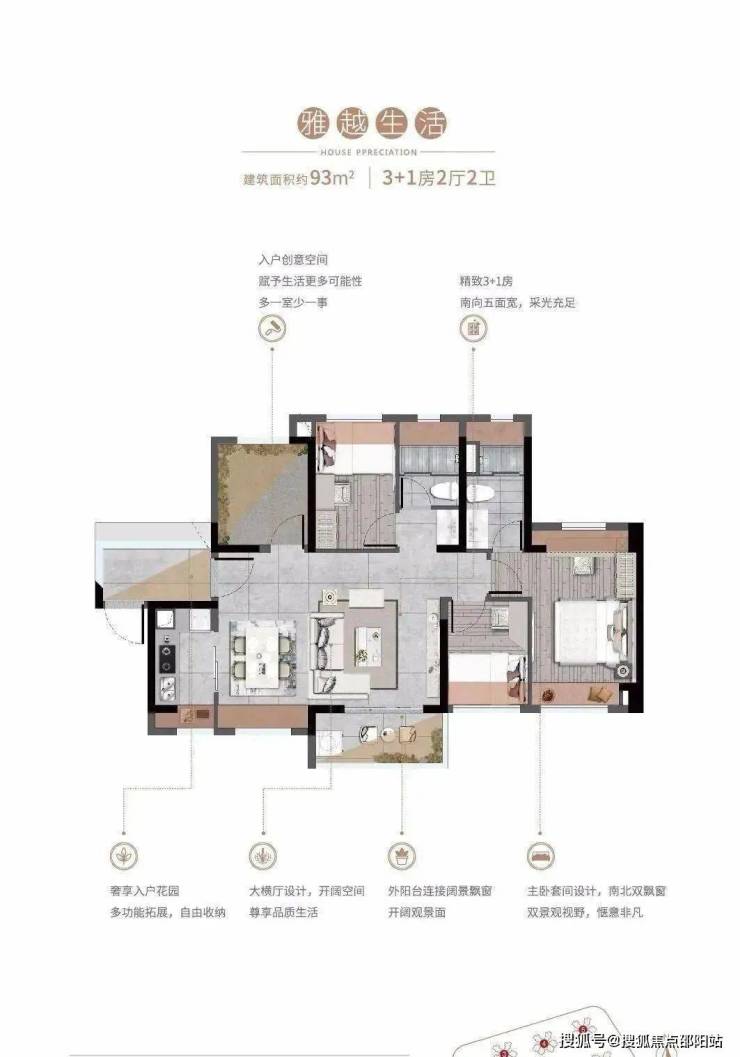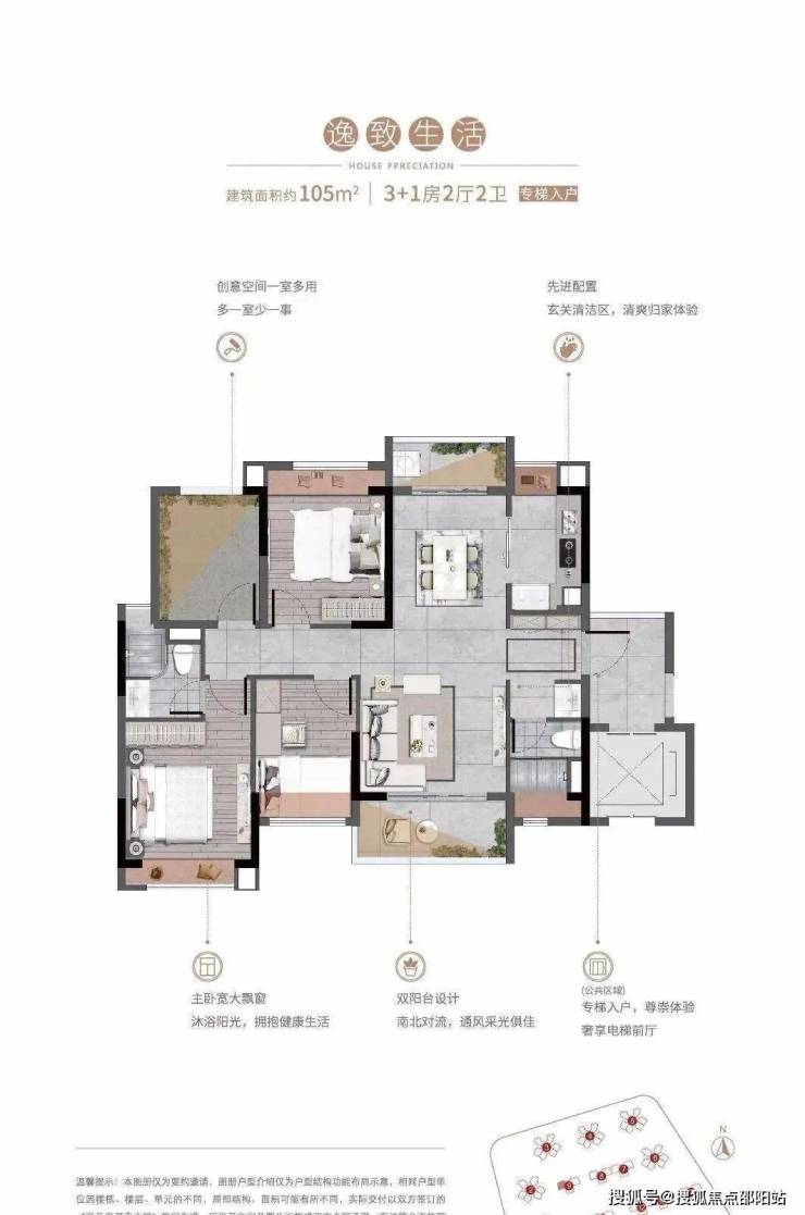 建面约105㎡ |3+1房 2厅2卫 专梯入户