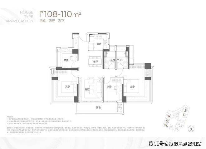 竖庭格局,西南向,基本居住功能与建面约108-110㎡4房2卫一致,但格局不一样,从目前公布的户型图上看,主要是主卧空间有了更大的提升,比如可以放更大一点的衣柜。但从位置上看,它所在的楼栋更靠近主干道,会有噪音影响。