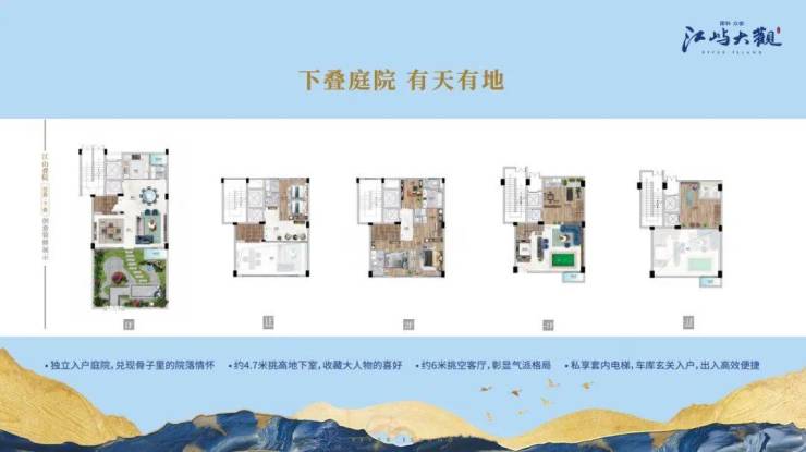 建筑面积约13万方江岸巨著,集商务、办公、居住于一体,主力产品为江山叠院、江景公馆,自规划美学园林、科创广场、文化中心、老年中心等奢级配套,属于城央之上的纯粹高端住区。