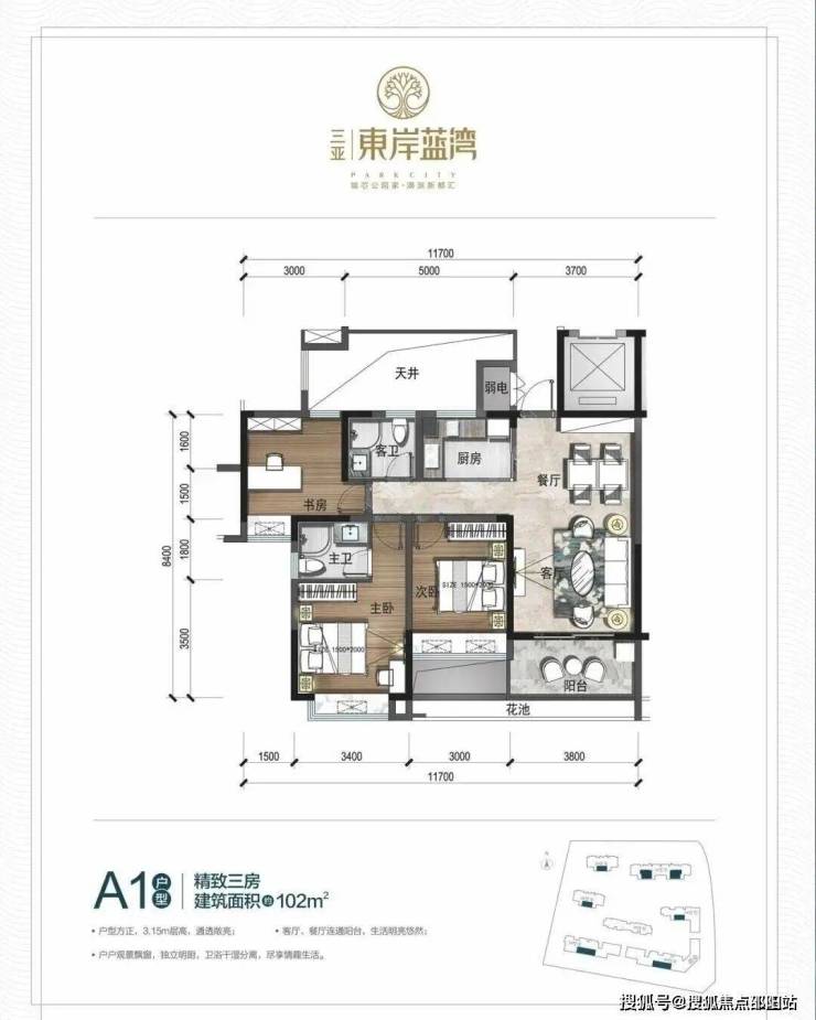 ▼A1户型: 102㎡ 精致三房