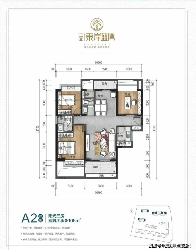 ▼A2 户型:105㎡ 阳光三房