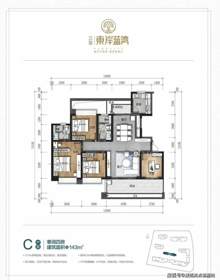 ▼C户型:建面约143㎡ 奢阔四房