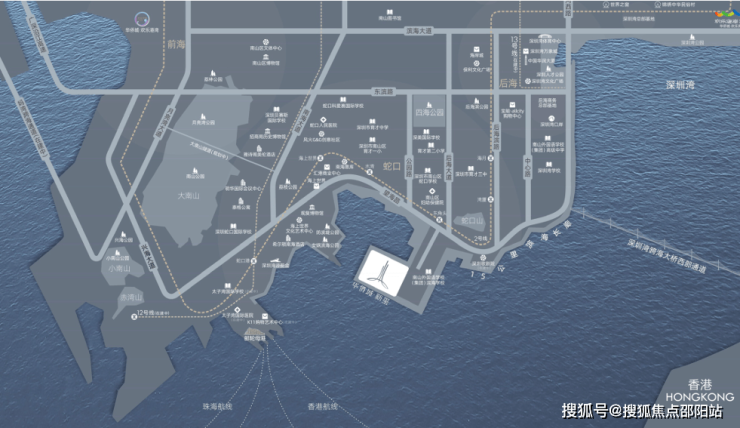 华侨城新玺项目位于蛇口街道南端,东南海玫瑰园三期,南面临深圳湾;与香港元朗隔海相望,连接香港的西部通道跨海大桥落脚于蛇口东角头。距离南山后海约4公里,与海上世界项目隔“小湾区”相望,与南海玫瑰三期和半岛城邦为邻。