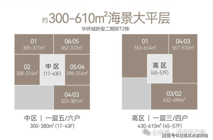17-57F 海景大平层(中区17-43F、高区45-57F 户型分布如下图所示)