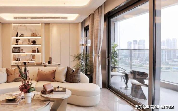 更震撼的体验,是当你步入阳台时。弧形玻璃的设计,让江景全画幅被你的视觉所占有,带来极强的视觉冲击力。驻足于此,你不需要去眺望江景,而是开阔的珠江直接将你环抱。