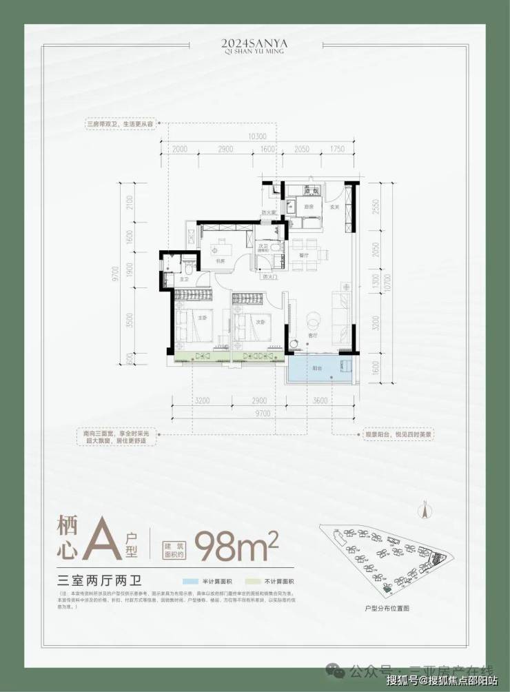 【住宅户型】A户型 建面约98㎡三房两厅两卫