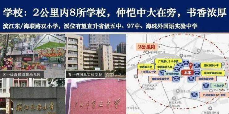 中学:省一级广州第五中学(今年划分)、省一级广州市第九十七中学(今年划分)省一级南武实验中学、海珠外国语实验中学(今年划分)、广州市第七十八中学、广州市海珠区实验中学