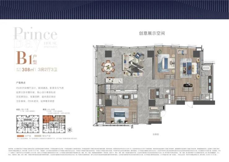 户型分布在高区33-47层,4个户型朝向,也可以两套打通做620㎡大户型,东南跟西南主要看海景,西北跟东北斗可以看部分海景+大小南山景观