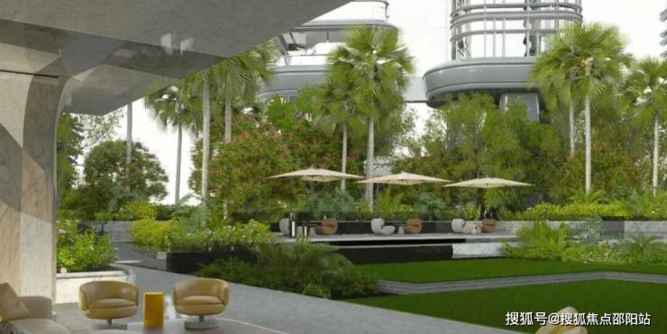 园林偏传统平面花园的布局,部分区域是13米挑空的立体园林。
