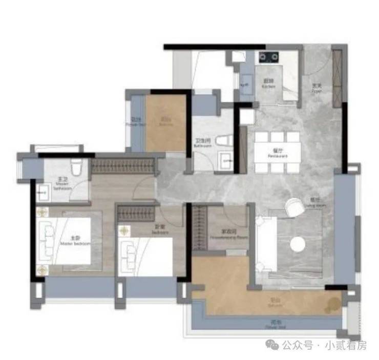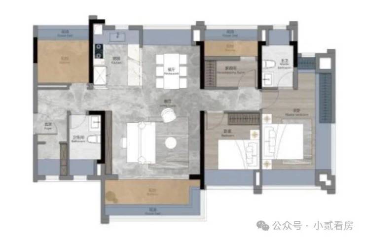 如果全屋的赠送加起来,总共有20多平,也就是说相当于拓宽了一个主卧的面积。