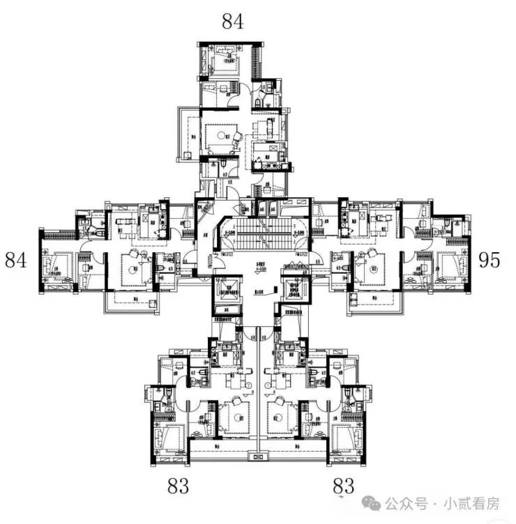 主推建面约84-119平三至四房户型,作为最新报建组团,使用率实现100%,部分户型甚至能做到107%。