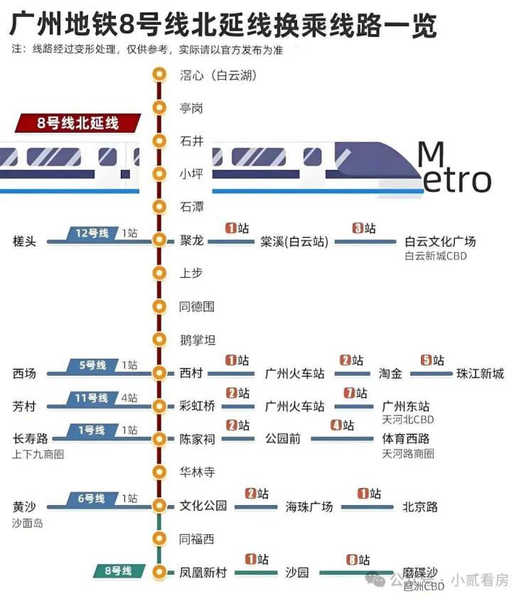 业主可以乘坐家门口的8号线,只需3站即可直达广州白云站(地铁石潭站)。