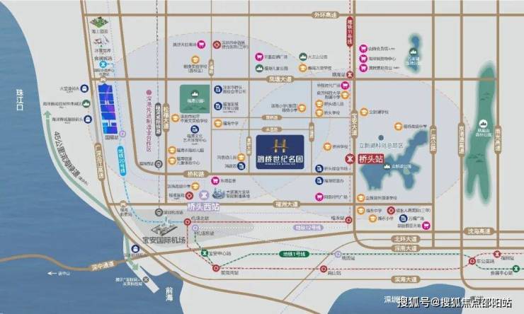 项目距离11号地铁线“桥头站”约600米,1站到福永可换乘12号线,3站到机场,5站到宝安,6站到南山前海湾,11站到南山高新园,12号地铁线“福海西站”约1.5公里,还有穗莞深城”福海西站“,该线路于2019年12月15日已建成开通运营。