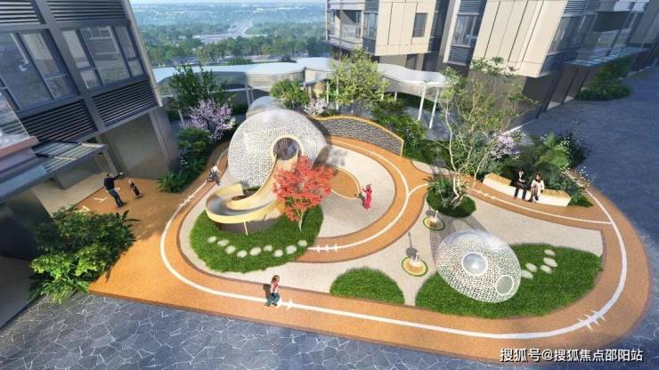 并围绕三处水景,根据不同年龄划分三大活力空间,涵盖双儿童活动区、成人健身区、泛会所以及风雨连廊,可实现无风雨化归家、社区娱乐活动等。