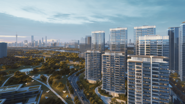 项目推动升级四横五纵交通路网,未来将打造“地铁+城际+水路+飞的”海陆空五维复合交通枢纽,直达大湾区核心区域。北侧约33万㎡琶洲南商业综合体,联动保利国际会展中心等建筑群,构筑CBD繁华生活圈。西南侧规划人工智能大模型导向的港澳子弟学校,东侧约500米处公立学校预计由广州市第五中学领办,实现全龄段教育资源覆盖。