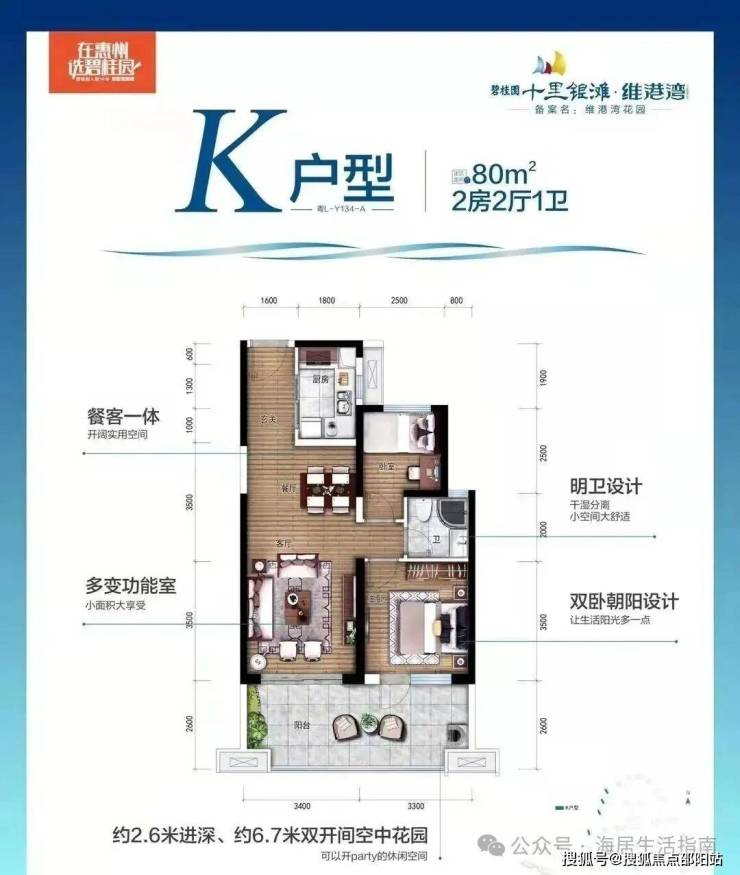 在售户型:70-80㎡1+1房2厅2卫