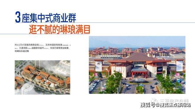 3座集中式商业群 —— 滨海风情商业街距项目约1km、约8km到达九里润街、约8km到达王府井悦舞小镇(原首创奥特莱斯购物中心)