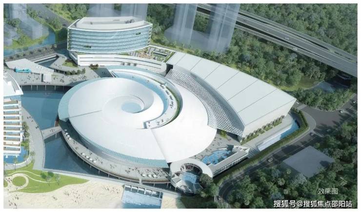 外观为“鹦鹉螺”,由日本佐藤综合计画设计,以海洋动物展示、科技演艺、多媒体互动科普为主体,近享国际一流海洋主题公园,动物约200多种,融合全球最大青蓝洞景观。