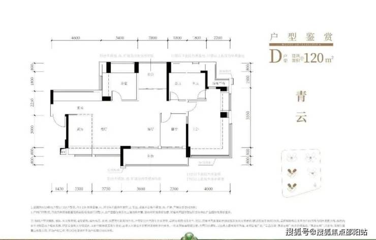 119㎡的4房2厅2卫,折后总价615-667万/套,单价约5.15-5.51万/㎡。