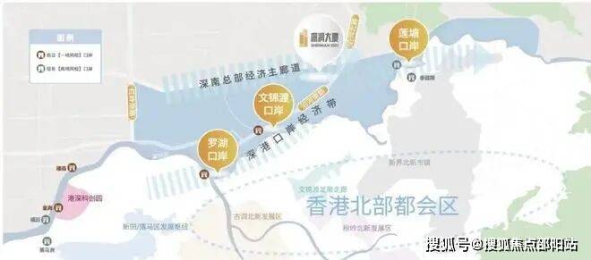 罗湖口岸、莲塘口岸、文锦渡口岸,三大口岸簇拥,链接深港