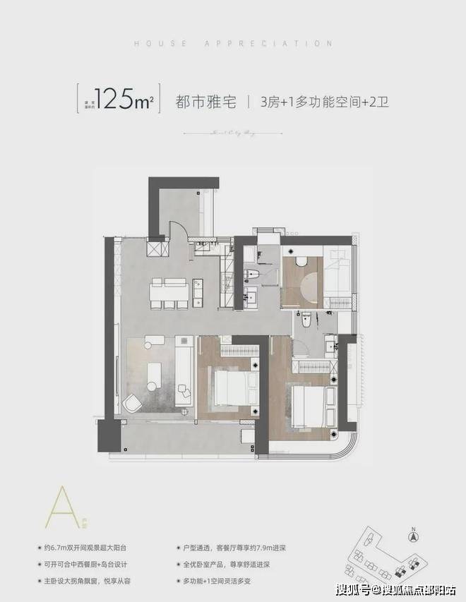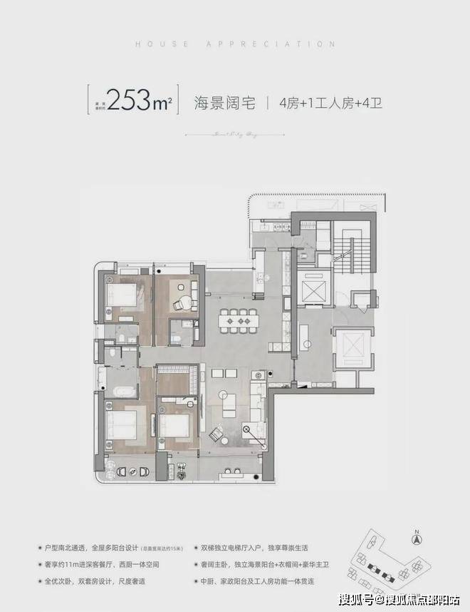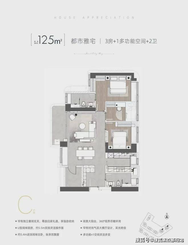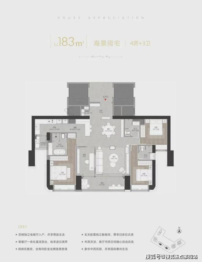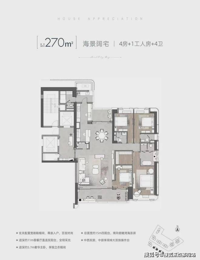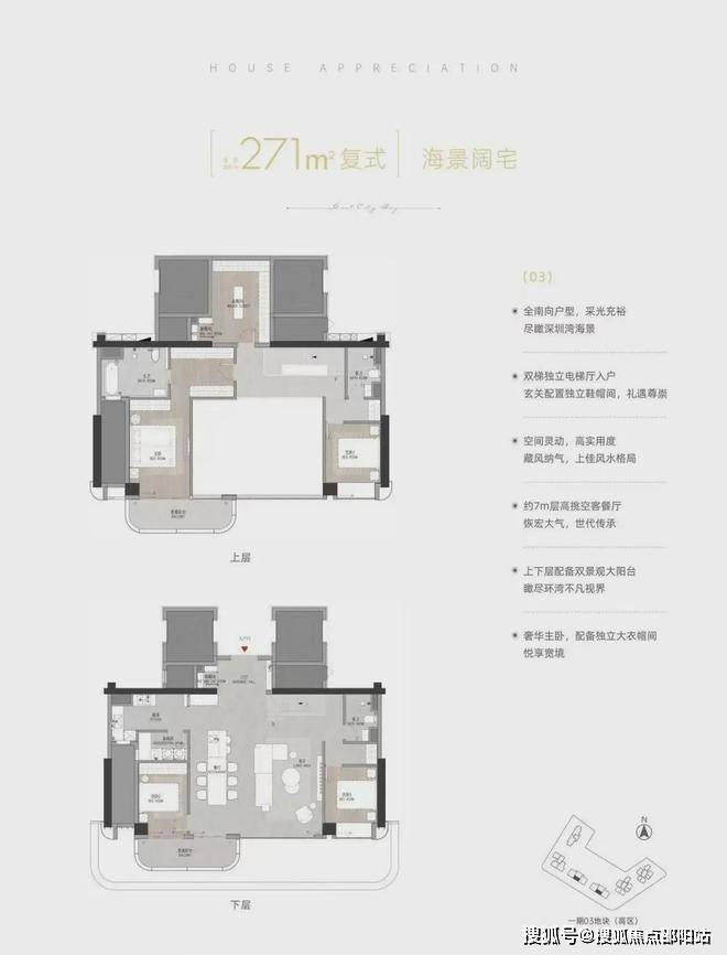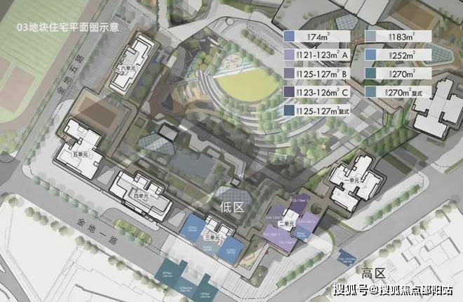 户型面积:高端住宅建面约121~270㎡,奢阔公寓建面约164~291㎡