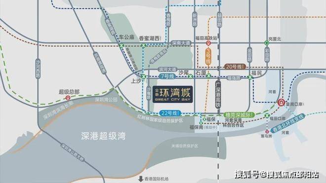 7号线双地铁口(上沙站、沙尾站);22号线双地铁上沙站 (规划中,双线交汇),1站直达香蜜湖新金融中心与国家级河套深港创新合作区。