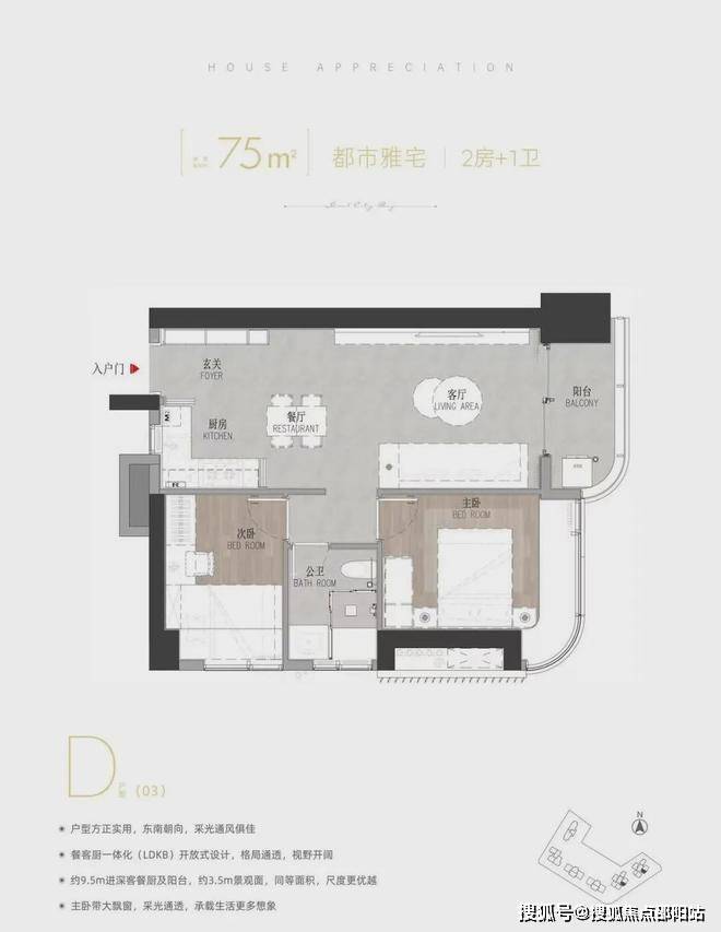 2房2厅1卫75㎡