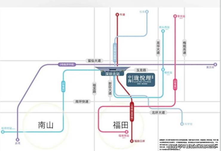 ●五地铁:地铁4/5/6号线交汇于深圳北站、27号线(建设中)、22号线(建设中),通达西丽留仙洞、高新科技园、深圳湾、前海合作区等超级总部基地。