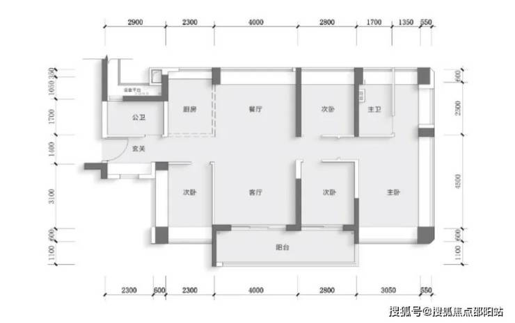 【88㎡3房2厅2卫】:经典的竖厅结构,动静分区。