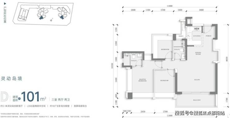 【101㎡3房2厅2卫】:客厅开间更大5.1米,LDKB一体化,而且还是三面采光,通风视野都会更好。