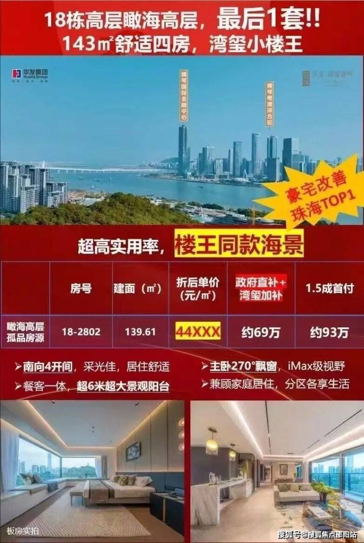 华发湾玺壹号位于广东省珠海市香洲区通航二路199号,隶属华发国际海岸花园南区(S1、S2)项目,总建筑面积267983㎡,容积率2.52,绿化率35%,可容纳1294户,提供约1700个停车位,车位比1:1.31。该项目整体包含10栋8-10F低密洋房、7栋阔景山海高层、3栋瞰海大平层,共20栋楼。是琴澳滨海CBD最后一块可开发的纯住宅用地,产品为建面113-246㎡四至五房产品,均为高品质精装修交付。