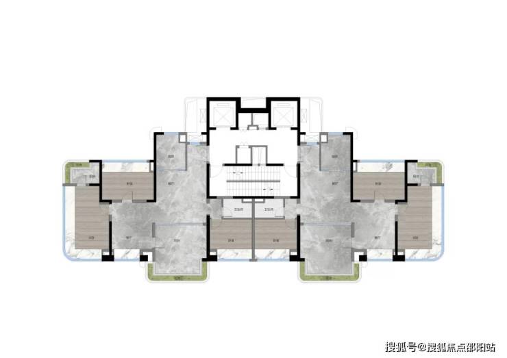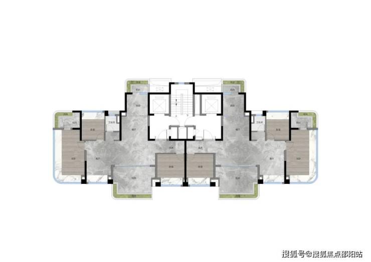 整个小区所有楼栋都是正南正北T2板楼,一共三个地块,你也可以看作是一个整体,因为保利把分割三个地块的道路变成密林景观道。可以通过茂密的树丛遮挡道路和行车,在楼上往下看就是一个连成一体的大花园。