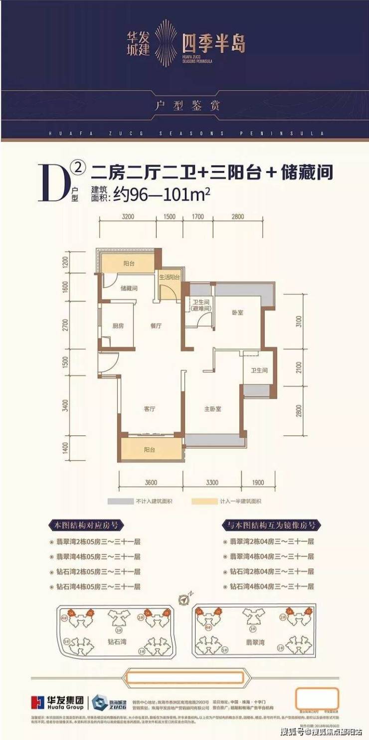 户型位置:钻石湾2栋04/05户型,总层高31层